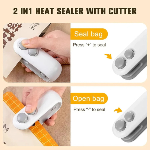 دستگاه دوخت پلاستیک شارژی که بدون نیاز به باتری و برق دوخت انواع پلاستیک و نایلون را در خانه به صورت دستی و بسیار راحت انجام میدهد این دستگاه مجهز به دکمه مخصوص برای برش دادن نیز میباشد.